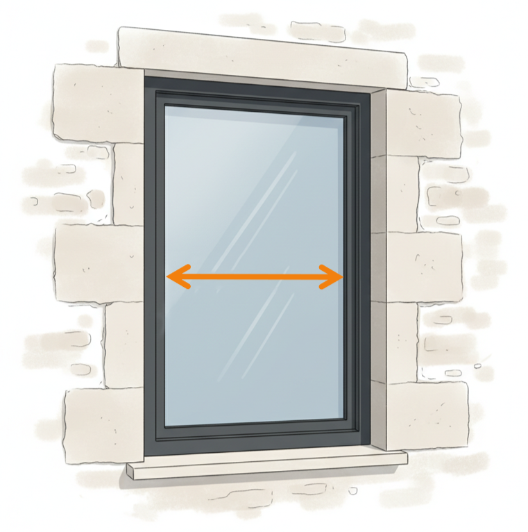 1. Largeur : Mesurez la distance entre les bords intérieurs du cadre, sur les côtés gauche et droit du vitrage.